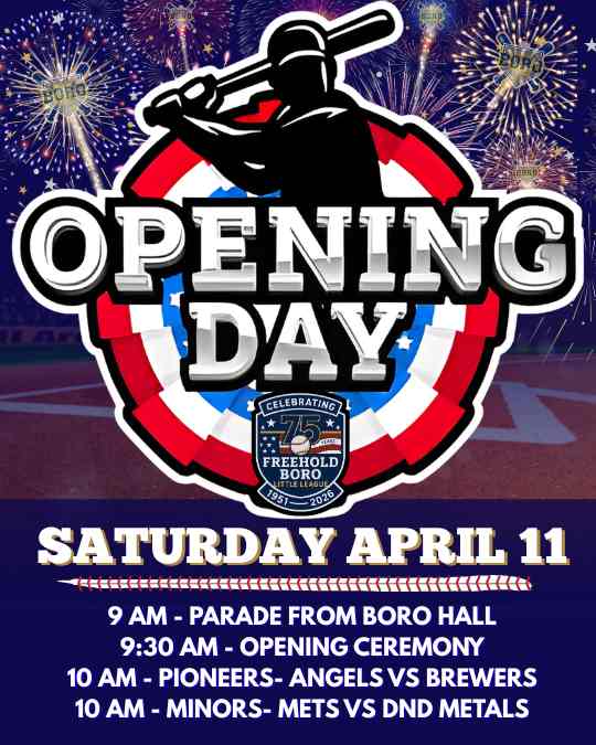 Opening Day Parade starts at 9 am leaving from Boro Hall.Opening Day Ceremony- 9:30 am